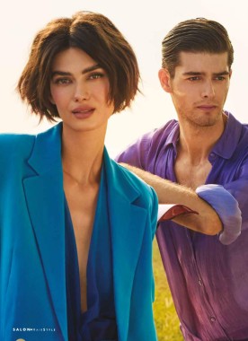 Sfumato ai lati e sulla nuca, con una maggiore lunghezza nella parte alta della testa, il taglio è leggermente scalato per alleggerire il volume e dare movimento.