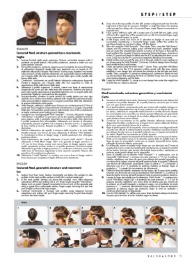 ascendente, passare al pettine n.2 e iniziare a sfumare con il n. 3 regolando diagonales frontales y cortando con el ángulo de los dedos reflejando la línea