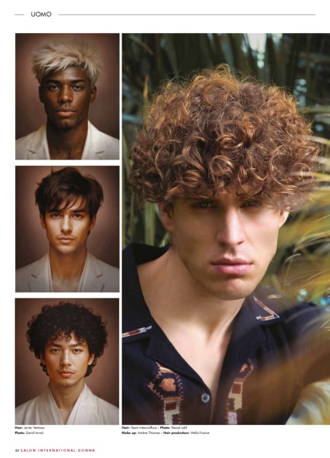 UOMO Hair: Javier Ventoso Hair: Team Intercoiffure - Photo: Pascal Latil Photo: David Arnal Make up: Ambre Thomas - Hair production: Wella France 62 SAL ON INTERNA TIONAL DONNA