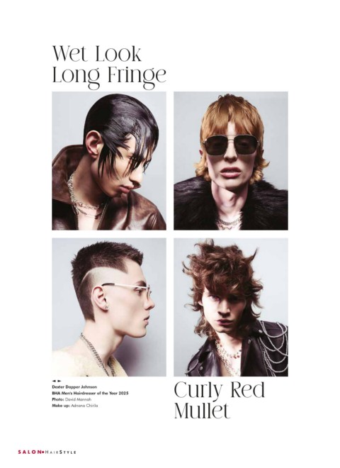 Wet Look Long Fringe Curly Red Dexter Dapper Johnson BHA Men's Hairdresser of the Year 2025 Photo: David Mannah Mullet Make up: Adnana Chirila