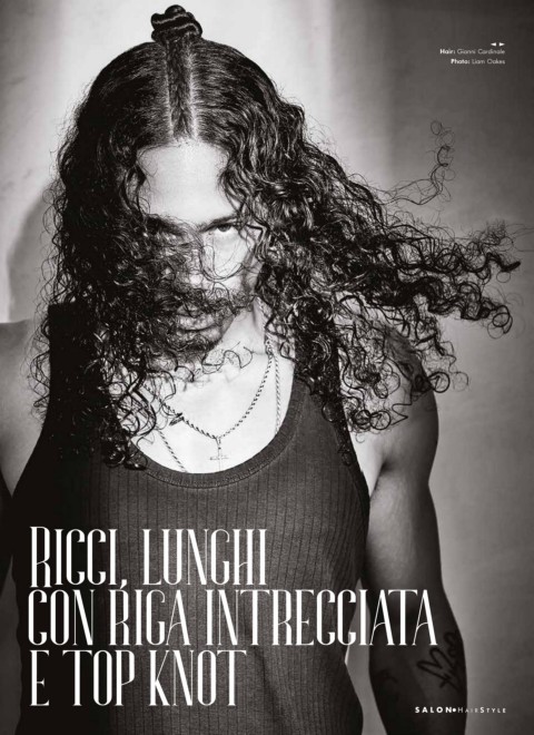 Hair: Gianni Cardinale Photo: Liam Oakes Ricci, lunghi con riga intrecciata e top knot