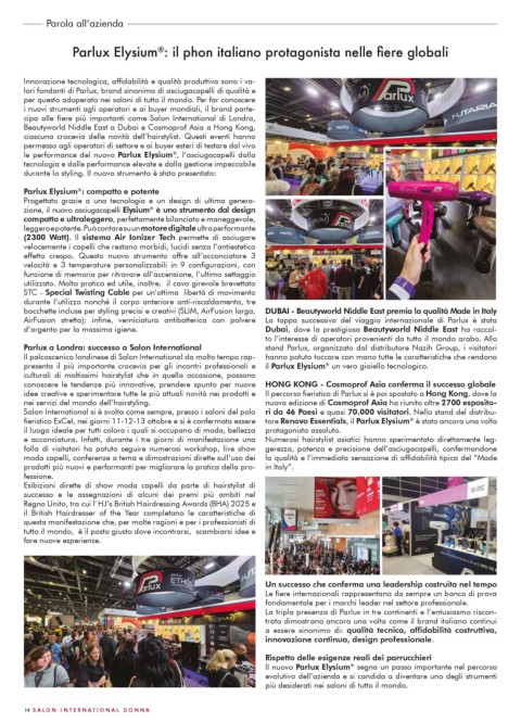 fieristico ExCel, nei giorni 11-12-13 ottobre e si è confermata essere tore Renovo Essentials, il Parlux Elysium è stato ancora una volta