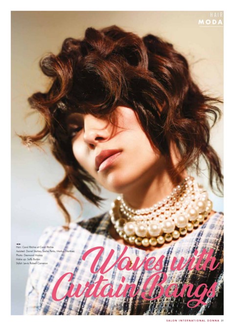 HAIR MOD A Long and Hair: Carol Ritchie at Carol Ritchie Assisted: Darrel Starkey, Sasha Perks, Markus Martinez Photo: Desmond Murray Make up: Saffy Burton Stylist: Lewis Robert Cameron Waves with Curtain Bangs SAL ON INTERNA TIONAL DONNA 31