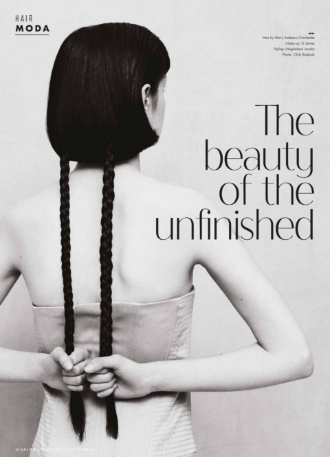HAIR MOD A Hair by Harry Andreou,Winchester Make-up: Si James Styling: Magdalena Jacobs Photo: Chris Bulezuik The beauty of the unfinished 46 SAL ON INTERNA TIONAL DONNA