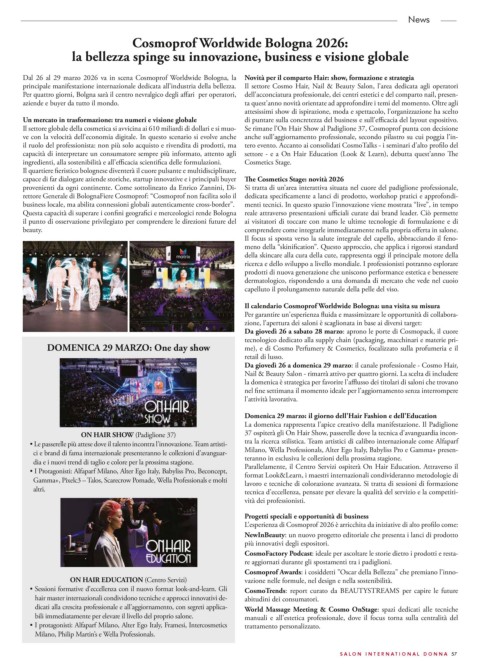 principale manifestazione internazionale dedicata all’industria della bellezza. Il settore Cosmo Hair, Nail & Beauty Salon, l'area dedicata agli operatori