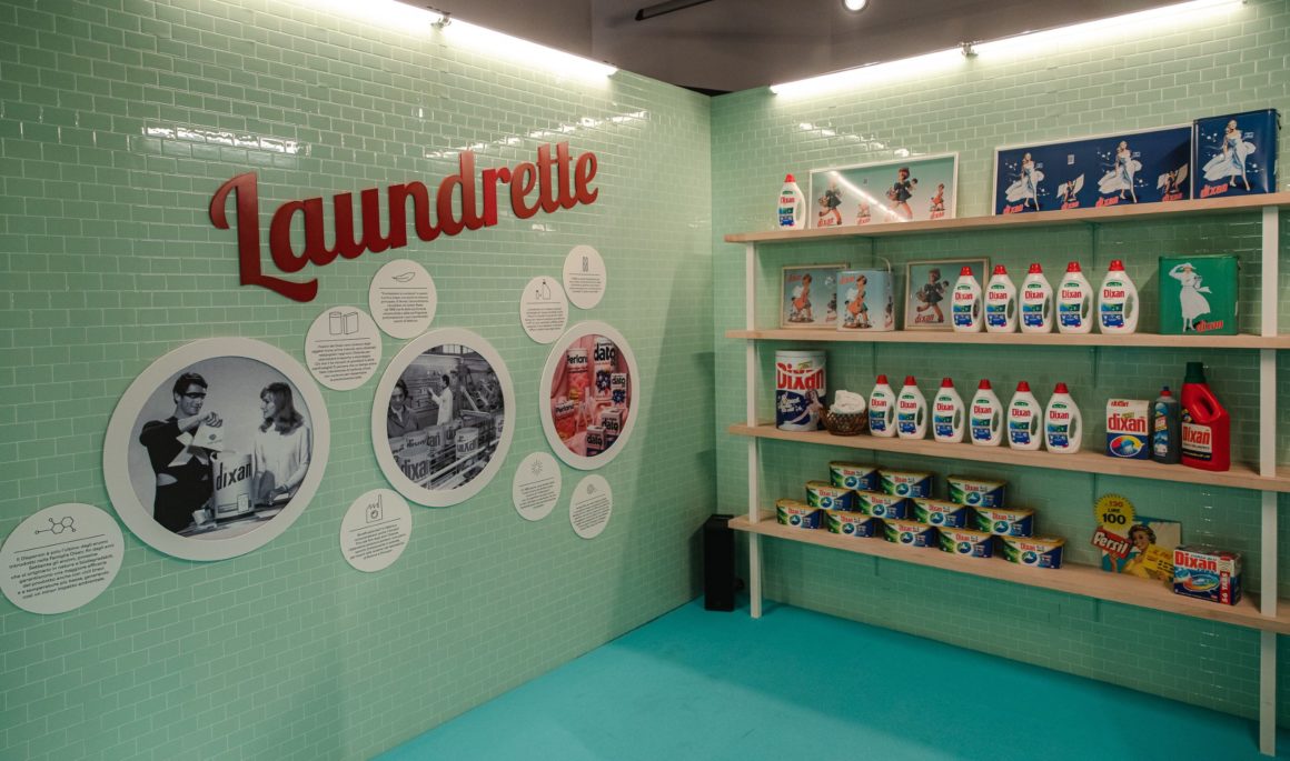 In mostra alcune le campagne pubblicitarie storiche, gli slogan e dei prodotti del brand tedesco, che ci riportano alla vita di tutti i giorni di qualche anno fa e testimoniano l’evoluzione dei consumi e dei costumi. I ragazzi degli anni Ottanta ricordano sicuramente lo slogan che girava in TV:  “Nuovo? No, lavato con Perlana” e ne hanno fatto un tormentone per anni; da Franco Cerri, “uomo in ammollo” di Bio Presto, all’eroe mascherato Mister X di Dixan, fino a Ferruccio Amendola, storico testimonial di Vernel e l’“uomo appeso a testa in giù” di Loctite Super Attak sono impressi nella memoria collettiva  di coloro che c’erano e che è bello condividere con le nuove generazioni.